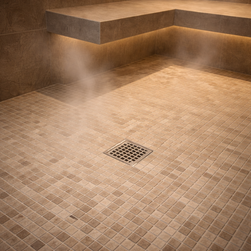 Proper steam room flooring depends on slope, not just material.